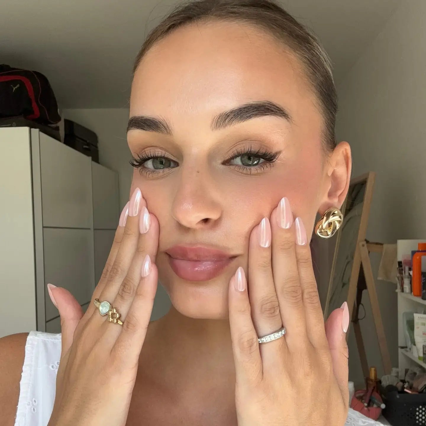 Introducing Angelface — the soft pink chrome nails everyone in LA is obsessed with. Inspired by the City of Angels itself, these short almond-shaped nails feature a smooth, glossy glaze that captures LA’s radiant, trendsetting vibe. Let your manicure glow with the dreamy, celestial shimmer of Angelface and channel the city’s effortlessly iconic style.