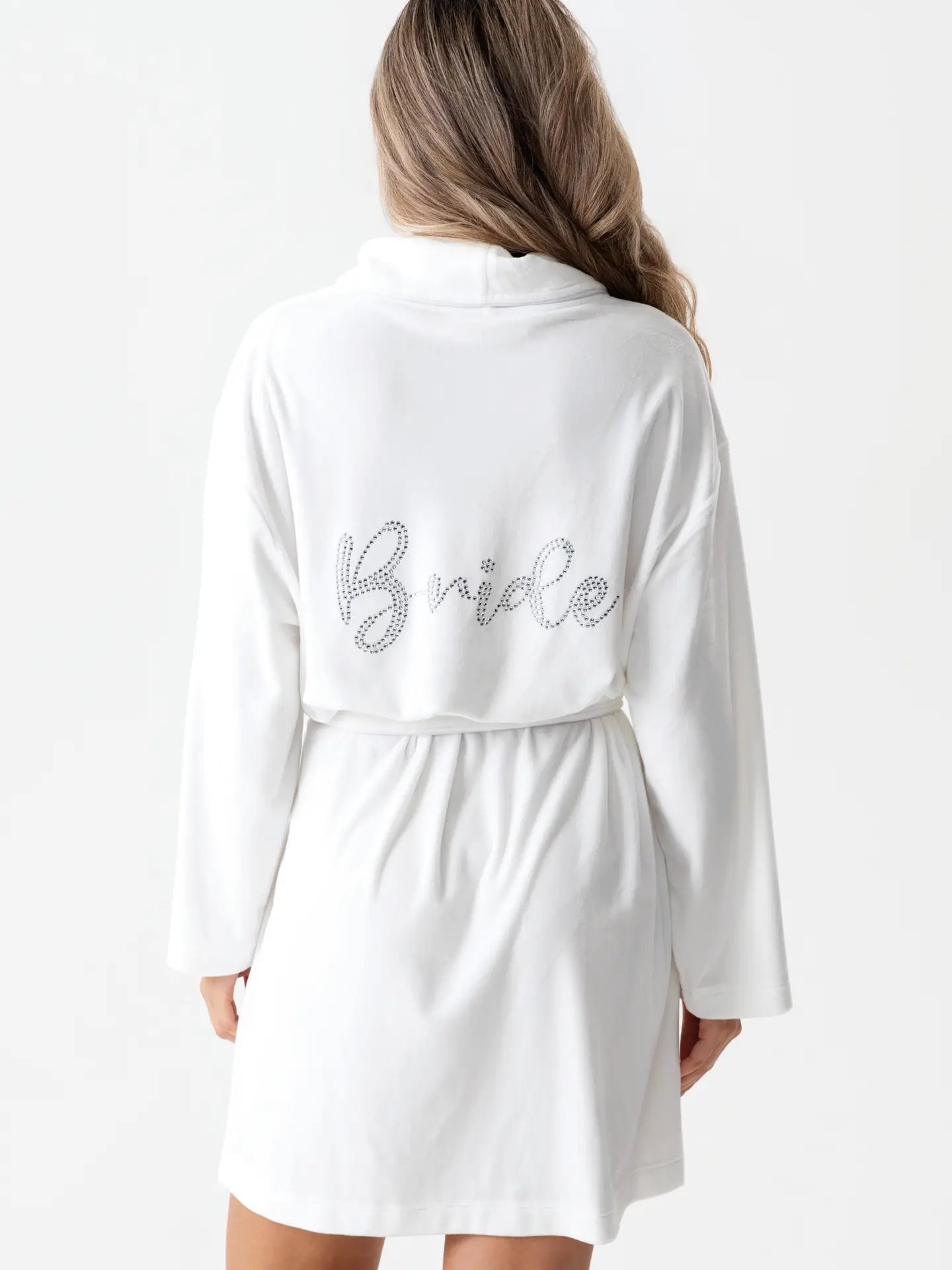 This is the perfect gift for a bride-to-be—thoughtful, stylish, and guaranteed to make her feel celebrated. We love how this robe combines comfort and bridal glam in the most effortless way. The sparkling rhinestone "Bride" lettering adds a fun, eye-catching touch—perfect for those picture-perfect getting-ready moments. Soft, elegant, and undeniably chic, it’s designed to make the bride feel special the moment she slips it on.