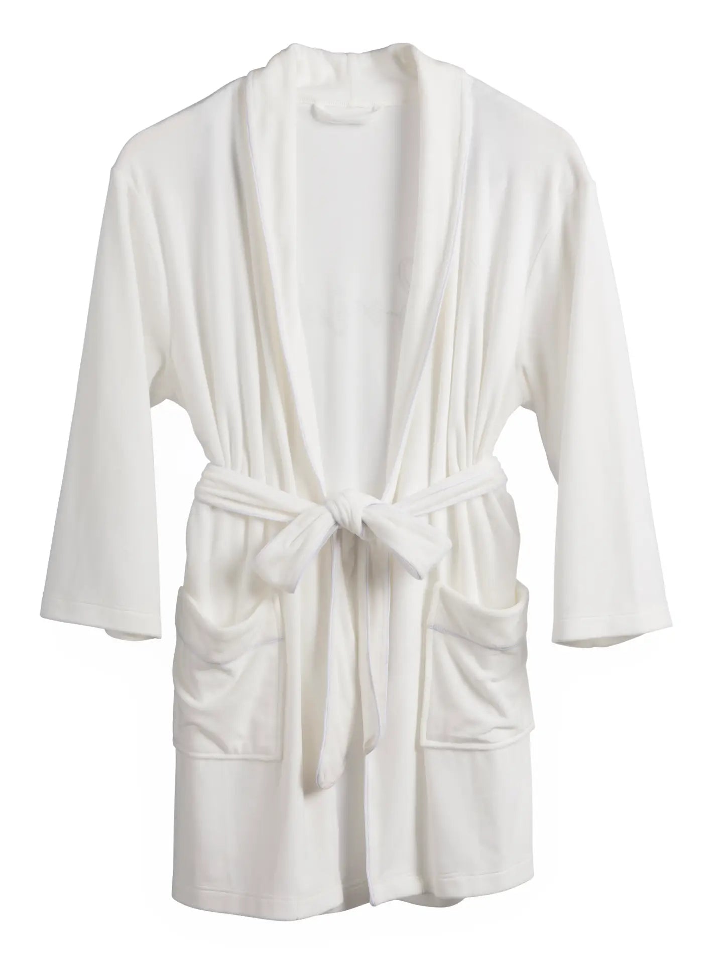 This robe is crafted from soft, lightweight fabric that drapes beautifully and feels effortlessly comfortable. It features spacious front pockets, a matching tie belt for a custom fit, and a relaxed silhouette that flatters every figure.