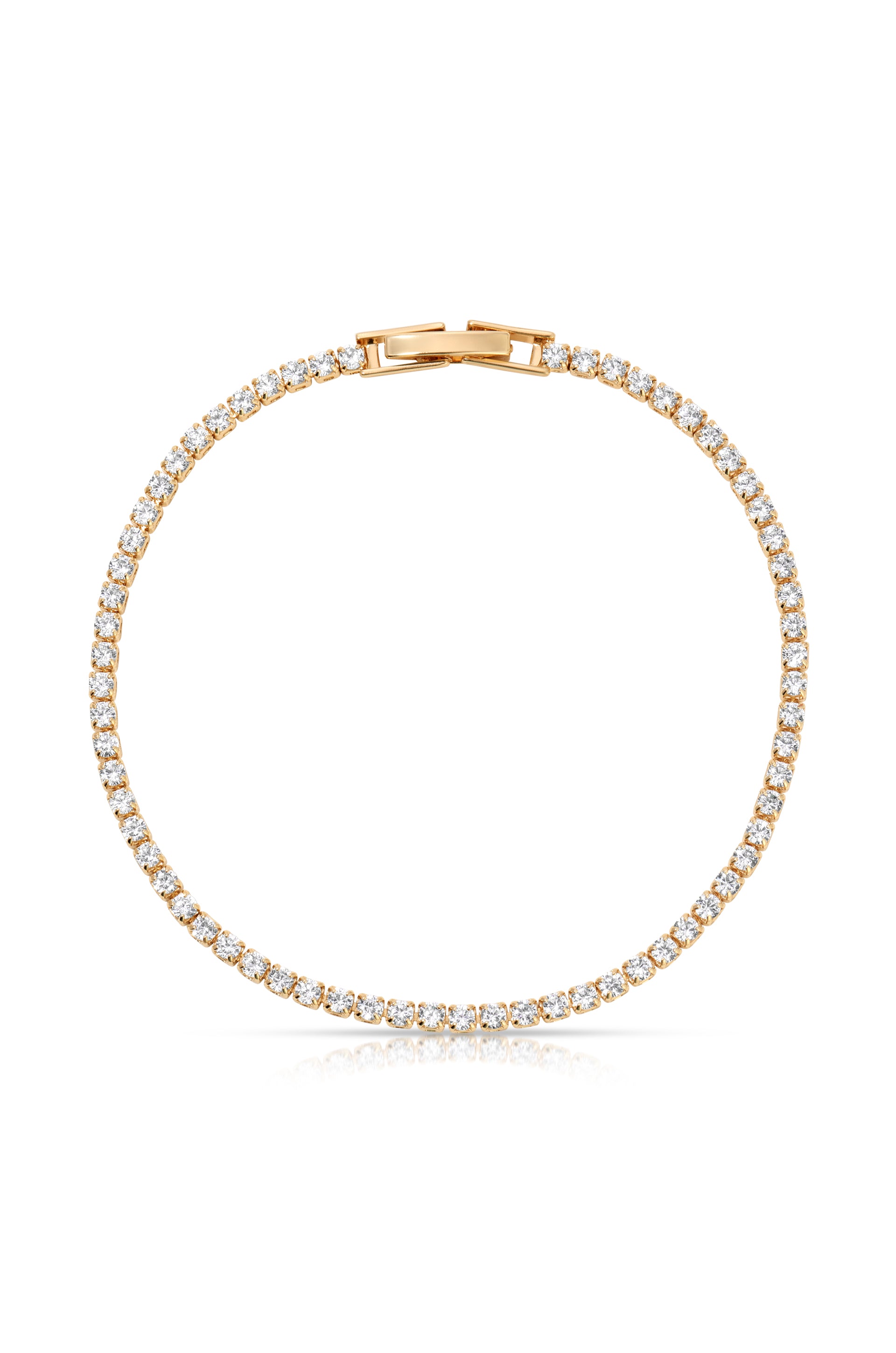 Sleek, sparkling, and effortlessly refined, the Minimalist Crystal Tennis Bracelet features a streamlined design adorned with radiant crystals for a hint of everyday elegance. Finished with a secure snap-lock closure, it’s as practical as it is polished.